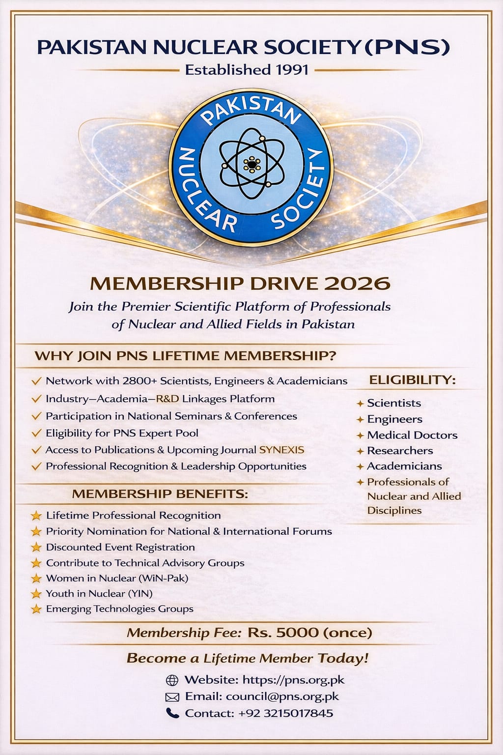 Students of professional colleges and universities may apply for PNS Associate Membership. The science students of A-level and F. Sc. can get PNS student membership
